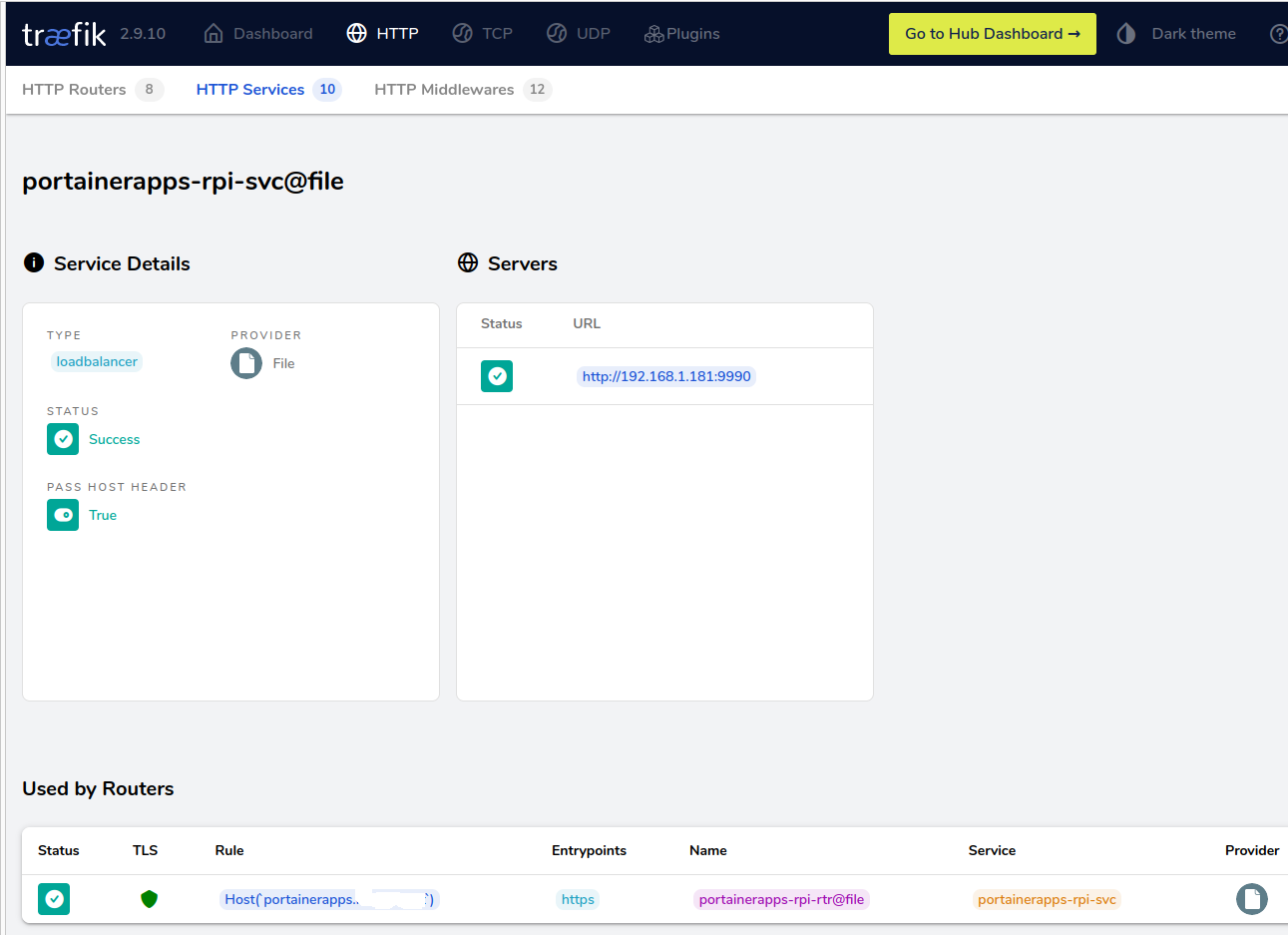 In traefik Dashboard I see the service status green and pointing to http://192.168.1.181:9990